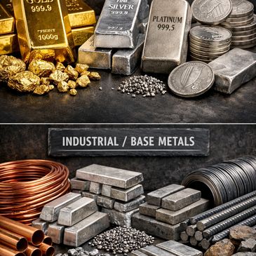 Ferrous: Iron ore, pig iron, billets, slabs, HRC/CRC steel, rebar, scrap.
